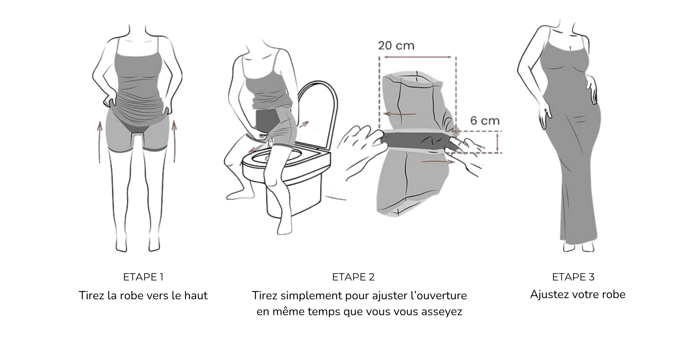 - Ouverture pratique à l’entrejambe pour aller aux toilettes facilement, sans devoir retirer la robe
