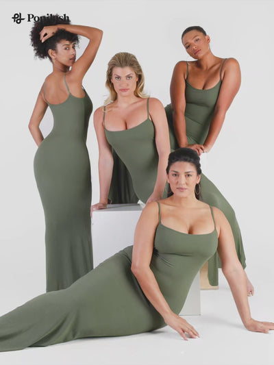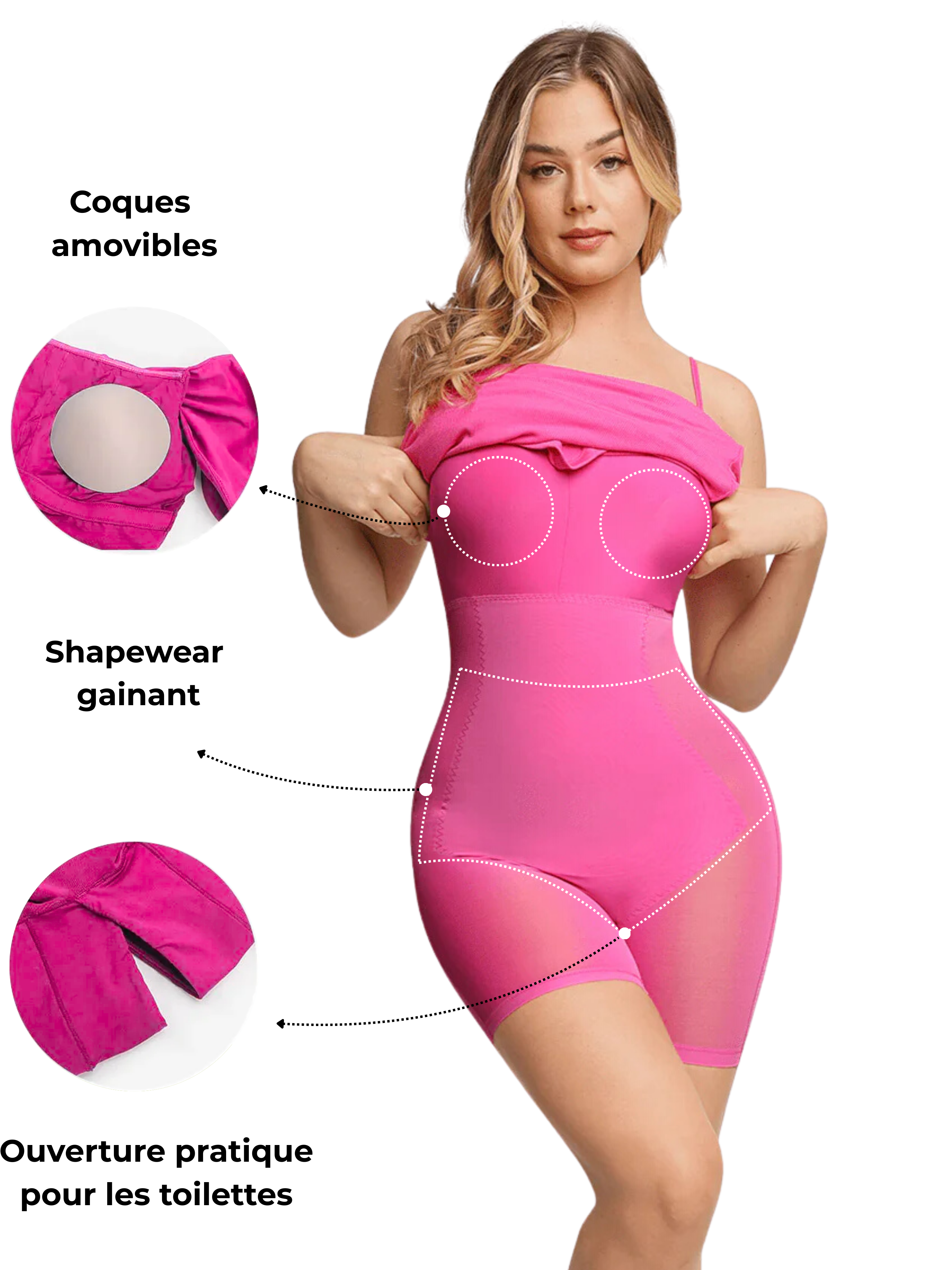 Oui. Le shapewear intégré lisse le ventre, sculpte les hanches et offre un maintien naturel de la poitrine — sans étouffer.
